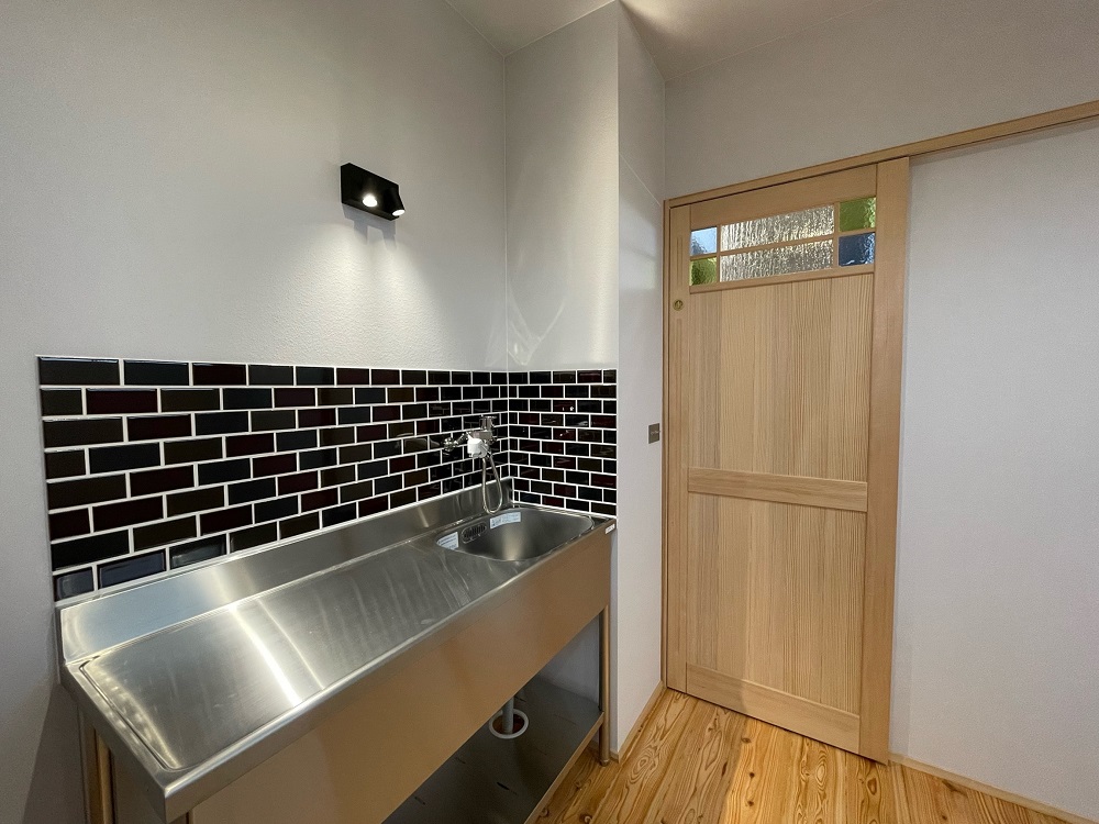 黒いタイルが輝くのは爬虫類系ペット専用のお部屋です。水回りやコンセントの位置にこだわりました。